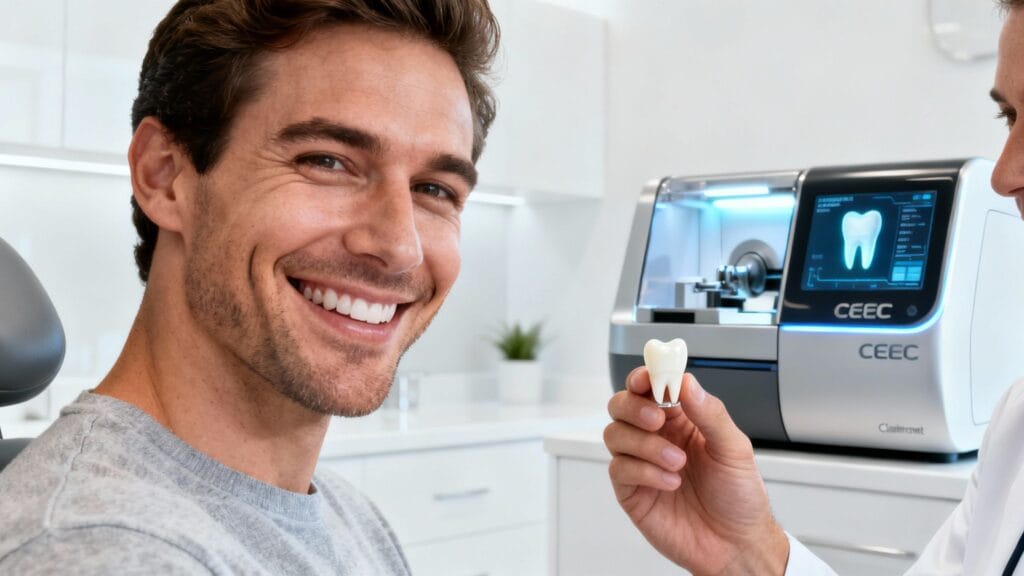 The official name is Chairside Economical Restoration of Esthetic Ceramics. That’s a mouthful, but what it means for you is simple: we design, mill, and place your permanent crown while you’re still in the dental chair. No goopy impressions, no temporary crowns, and no waiting weeks for an outside lab to get it done. The entire process happens under one roof. This type of in-office technology is a big part of why modern dentistry is changing so fast, and you can see how innovations are impacting the dental industry on a global scale.